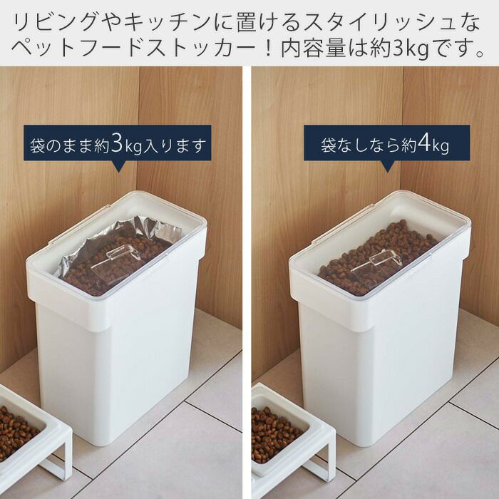 山崎実業 公式 密閉袋ごとペットフードストッカー タワー 3kg 計量カップ付き