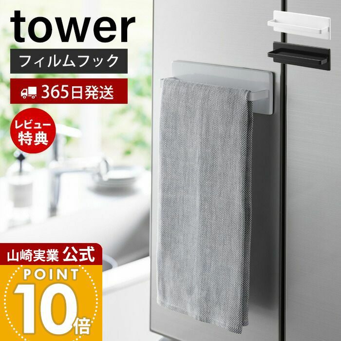 山崎実業 公式 フィルムフックキッチンタオルハンガー タワー