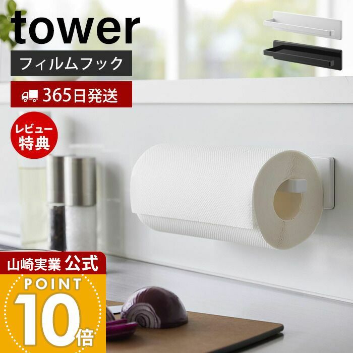 山崎実業 公式 フィルムフックキッチンペーパーホルダー タワー