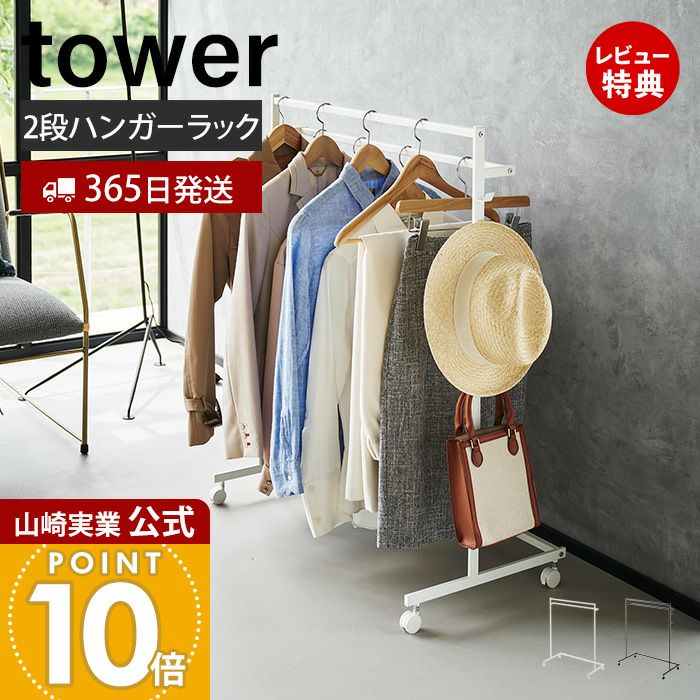 山崎実業 公式 収納力アップハンガーラック 2段 タワー