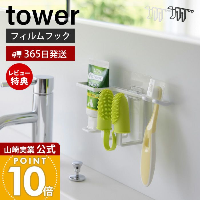 山崎実業 公式 フィルムフックペット用歯磨きセットホルダー タワー