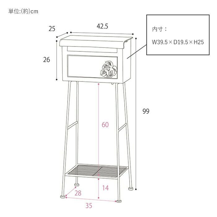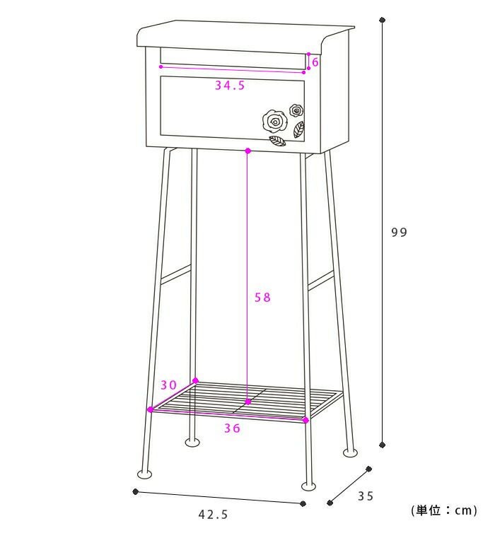 メールボックス ローズ横型 スタンドポスト [アンティークローズ]